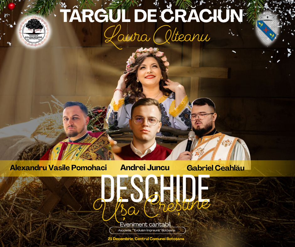 Magia Crăciunului se întoarce la Botoșana: Asociația „Evoluăm Împreună” și Primăria organizează Târgul de Crăciun, Ediția a II-a Botoșana, județul Suceava – Asociația “Evoluăm Împreună” Botoșana, în parteneriat cu Primăria Comunei Botoșana, anunță cu bucurie organizarea celei de-a doua ediții a Târgului de Crăciun. Evenimentul, dedicat comunității, tradițiilor și spiritului sărbătorilor de iarnă, va avea loc duminică, 21 decembrie 2025, în centrul comunei Botoșana, începând cu ora 13:00.